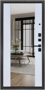 Внутр. отделка: фрезерованная МДФ-панель, 16 мм, с зеркалом, ПВХ-пленка, + ДВП подложка 3 мм