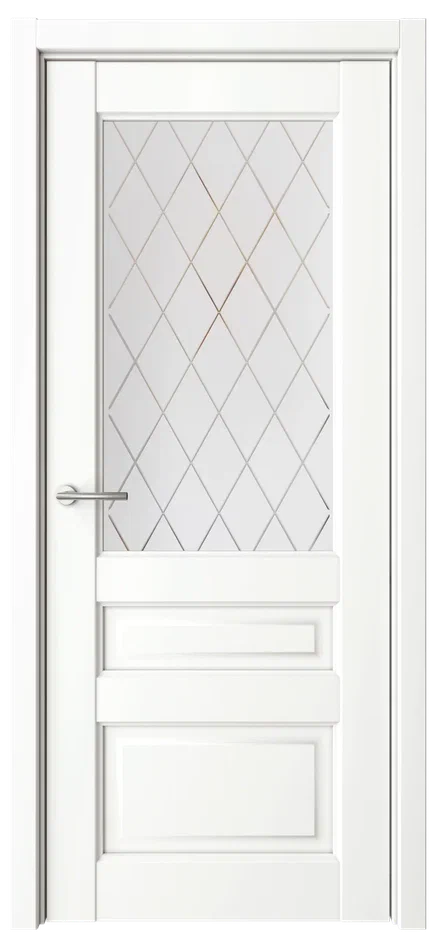 Элемент остекления "В цвете Белый, Ваниль — стекло «Мателюкс», алмазная гравировка (варианты рисунка Галерея, Ромб)