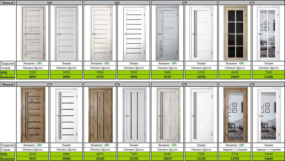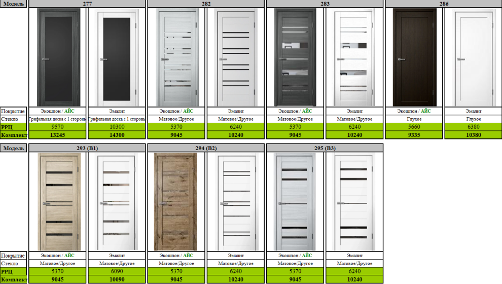 | НАЦЕНКА НА ПОЛОТНА РАЗМЕРОМ 900 мм +10% Сроки производства 5-10 рабочих дней! (в случае отсутствия остатков), на модели с щитовым заполнением (237, 238, 275, 286 и тд) — до 15-20 рабочих дней! Возможно изготовление полотен в нестандартных размерах: по высоте от 1000 мм до 2300 мм Ограничение по остеклению: "ЧЕРНЫЙ и БЕЛЫЙ ЛАКОБЕЛЬ" Модель: 201 / 203 / 217 (В4) / 270 / 271 / 273 / 274 / 275 - Высота до 2100 мм по ширине от 400 мм до 1000 мм, с шагом 10 мм. Цена +30% за нестандарт в одном измерении в двух +40% Цена за нестандартный погонаж (2400 мм) +40% |