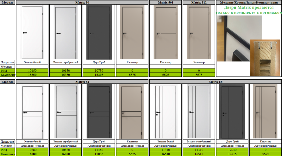 Коллекция "MATRIX". Двери MATRIX продаются только в комплекте с погонажом.
