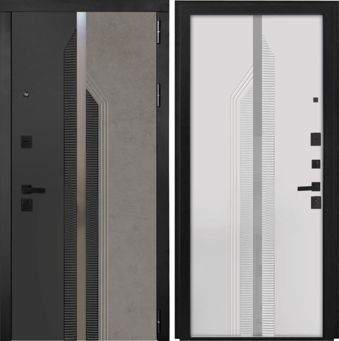 Внутренняя отделка: Фрезерованная панель МФД 10 мм, белоснежная шагрень / стекло белый лакобель
