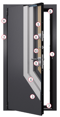 Терморазрыв в полотне и коробе двери, два слоя пенополистирола в полотне и минеральная плита в ребрах жесткости, три контура резиновых уплотнителей и отсутствие мостиков холода обеспечивают теплую и комфортную атмосферу дома.Атмосферостойкое покрытие