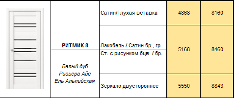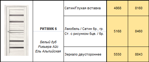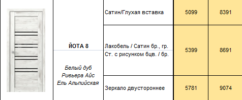 Модели ЙОТА 8, РИТМИК 6, РИТМИК 8 серии СИМПЛ в цветах: Белый дуб, Ривьера Айс, Ель Альпийская.