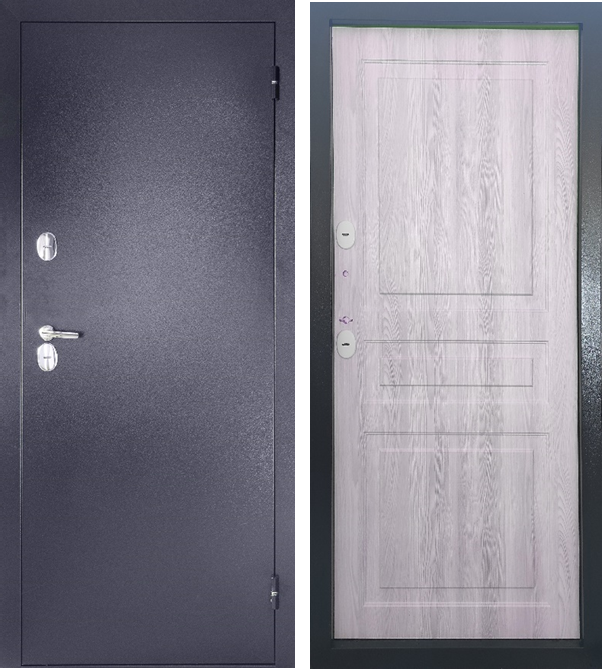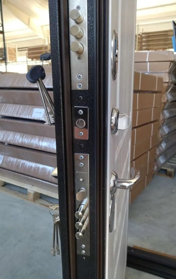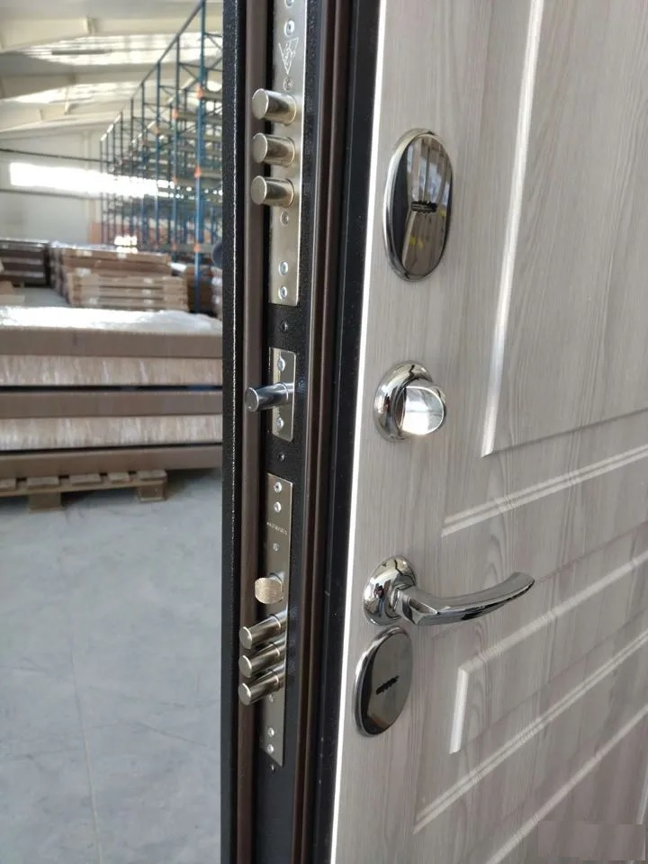 Дверь комплектуется двумя сувальдными замками Промет 30.11 и Промет 30.01 четвертого класса безопасности, а также алюминиевой дверной ручкой в цвете хром.