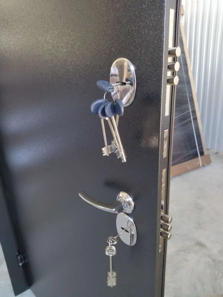 Входная дверь Норд покрыта износостойкой полимерно-порошковой краской имеет три контура уплотнения, которые обеспечивает защиту от сквозняков и шума.