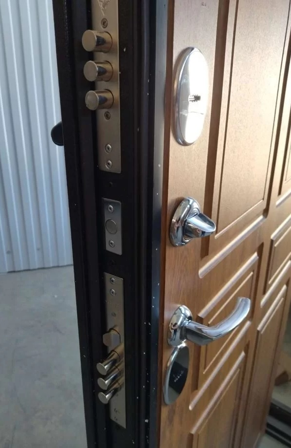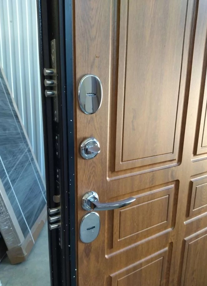 Дверь комплектуется двумя сувальдными замками Промет 30.11 и Промет 30.01 четвертого класса безопасности, а также алюминиевой дверной ручкой в цвете хром.