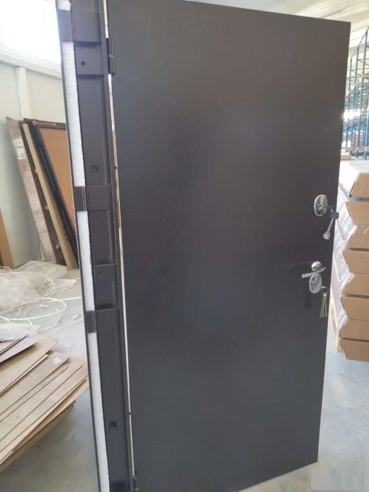 Входная дверь Норд покрыта износостойкой полимерно-порошковой краской имеет три контура уплотнения, которые обеспечивает защиту от сквозняков и шума.