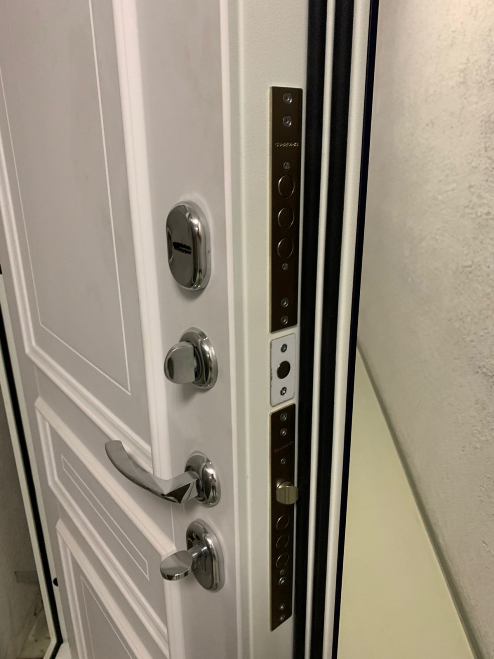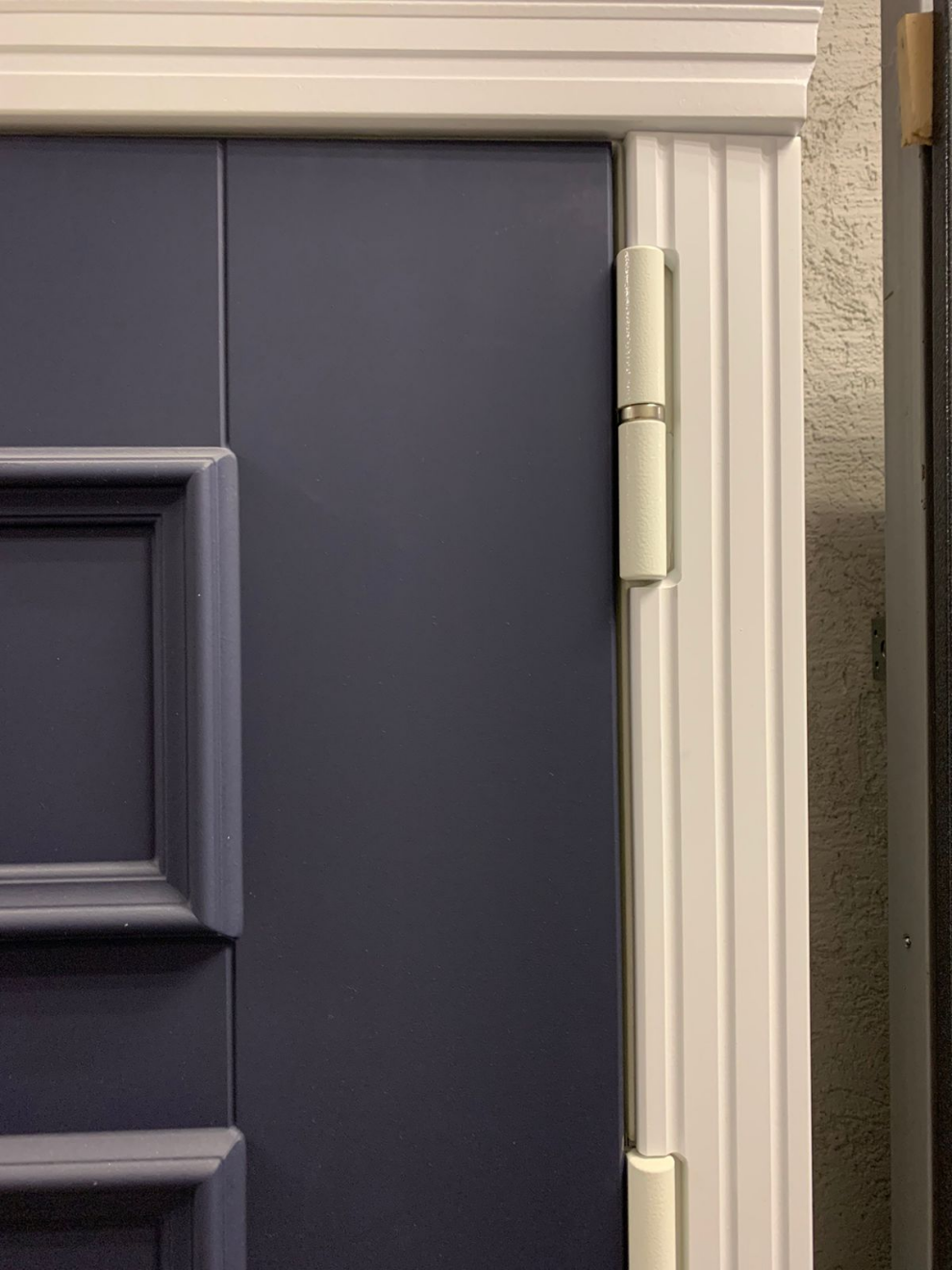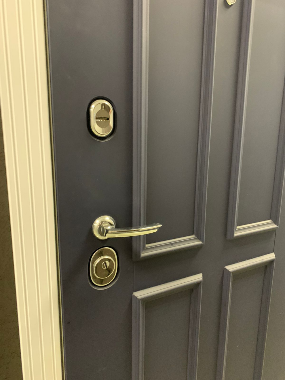 Стальная дверь СТРАЖ 3K Барцано в цвете внешней панели Темно-синий софт и внутренней панели цвета Софт белый снег с 3-мя контурами уплотнения для необходимой защиты Вашей квартиры от посторонних шумов и запахов, внутреннее наполнение с применением базальтовой плиты надежно уберегут Вас от проникновения холода. Замочные карманы с механизмами 4 и 2 класса взломостойкости